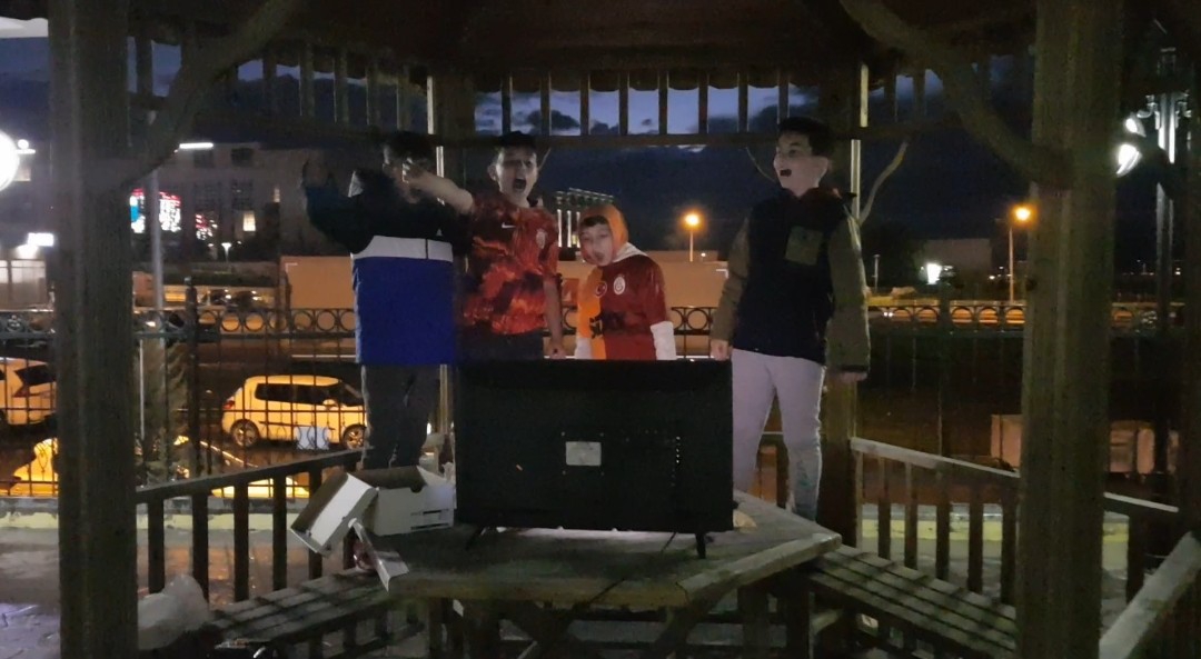 Erzurum Yıldızket'te bir site bahçesine kurduları televizyon etrafında toplanan çocuklar, maçı izlerken sevinç çığlıkları attılar ve gol sevinçleriyle renkli görüntüler oluşturdular. Şampiyonluk şarkıları söyleyip takımlarına olan bağlılıklarını gösteren minik taraftarlar, Erzurum'un soğuk havasını sıcak bir atmosferle doldurdular.