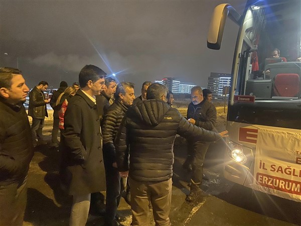 Erzurum İl Sağlık Müdürü Dr.Gürsel Bedir ve Şehir Hastanesi başhekimi İbrahim Hakkı Tör, öncülüğünde, Erzurum Valisi Okay Memiş'in girişimleriyle, Deprem bölgesine yardım için Tüm sağlık camiası kenetlenerek Bir Tır battaniye ve giyim malzemesi Bir Otobüs sağlık çalışanı ile hareket etmiştir.