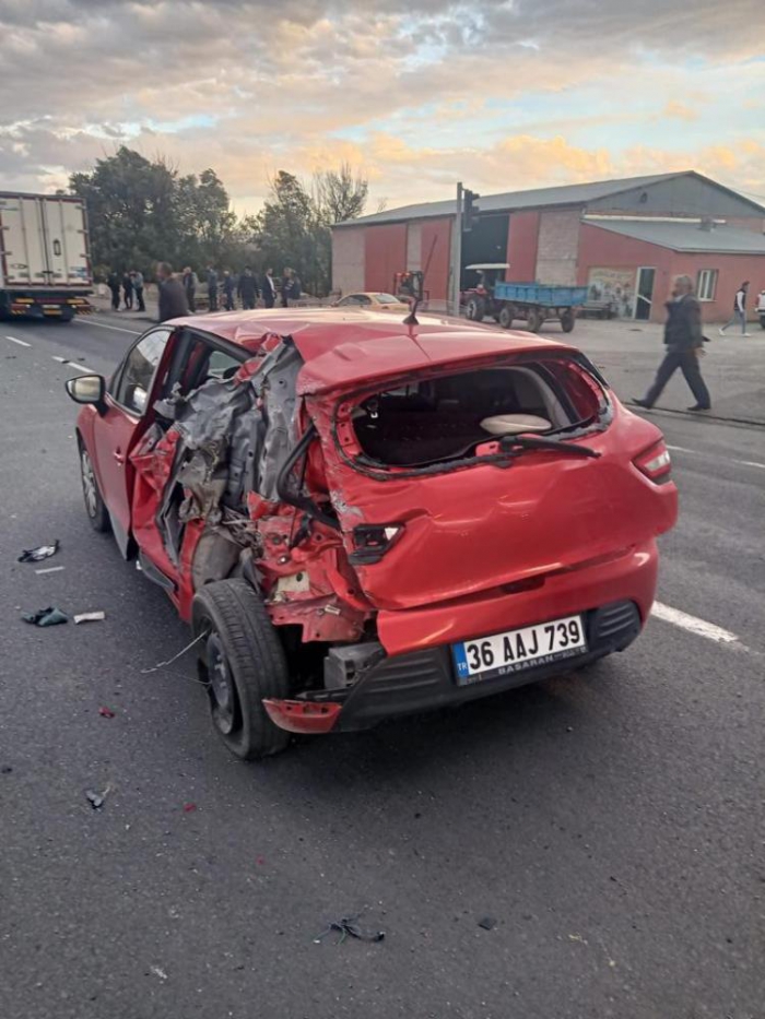 Edinilen bilgiye göre, Ağrı yolu Nurettin Aydın Petrol Kavşağı'nda meydana gelen kazada, Erzurum istikametinden Kars istikametine seyir halinde olan Halen Yasin Topkaya idaresindeki 36 ED 014 plakalı sebze yüklü kamyon, ana yolda 36 AAJ 739 plakalı otomobile arkadan çarptı. Çarpmanın etkisiyle takla atarak refüje çıkan kamyon ters döndü. Kamyonda bulunan sebze ve meyveler yola saçılırken, kazayı gören vatandaşlar durumu hemen 112 ekiplerine bildirdi.