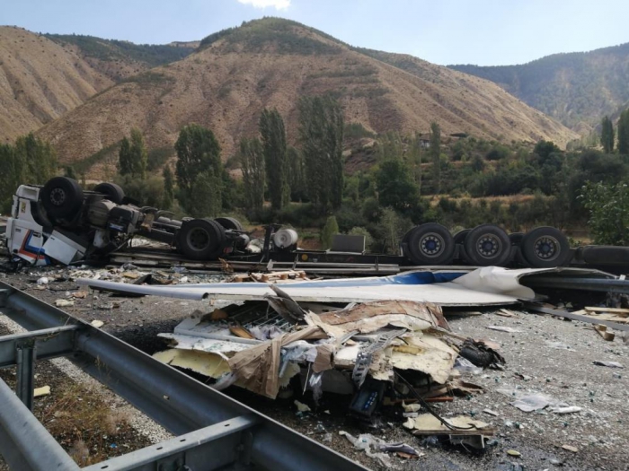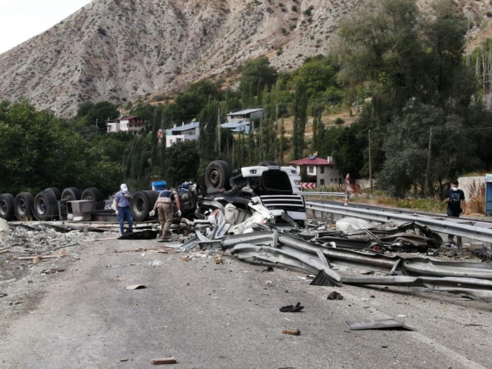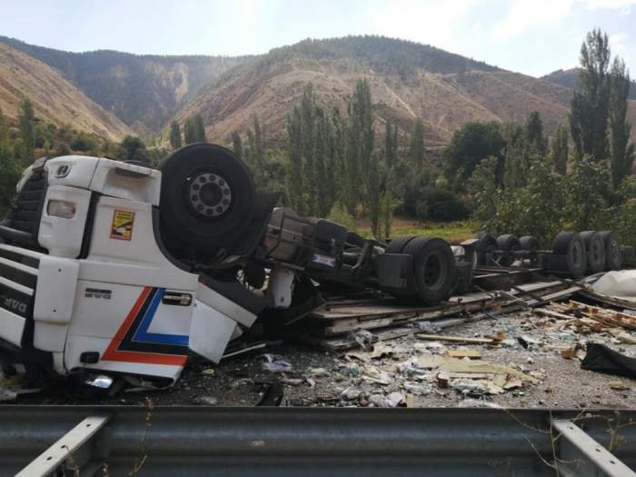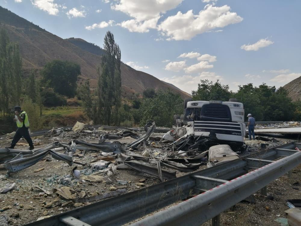 Erzurum’da seyir halindeyken şoförün direksiyon hakimiyetini kaybetmesi sonucu devrilen tır parçalara ayrıldı. Tır şoförü kaza sonucu tanınmaz hale gelerek hayatını kaybetti.