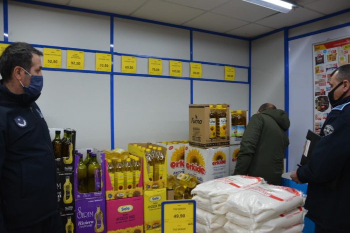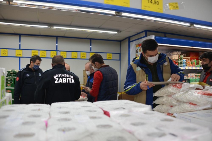 Zabıta Daire Başkanlığı ile Ticaret İl Müdürlüğüne bağlı ekipler, kent genelinde faaliyet yürüten yerel ve zincir marketlerde denetim yaptı. Denetimlerde fahiş fiyat artışı olup olmadığı kontrol edilip, başta yağ stoklanmasına karşı marketlerin raflarında incelemelerde bulunuldu. Ürünlerin kasa ile etiket fiyatları karşılaştırılarak, haksız fiyat, fiyat etiketi ve KDV denetimleri yapıldı. İşletme yetkililerine gerekli uyarıların yapıldığı denetimlerde, fahiş fiyat uyguladığı belirlenen marketlere ise cezai işlem uygulanıyor. Tespit edilen aksaklıklarla ilgili tespit tutanağı tutan zabıta ekipleri, iş yeri sahiplerini stokçuluk yapmamaları konusunda uyardı. Büyükşehir Belediyesi'nin "fahiş fiyat ve stokçuluk" denetimlerine devam edeceği belirtildi.