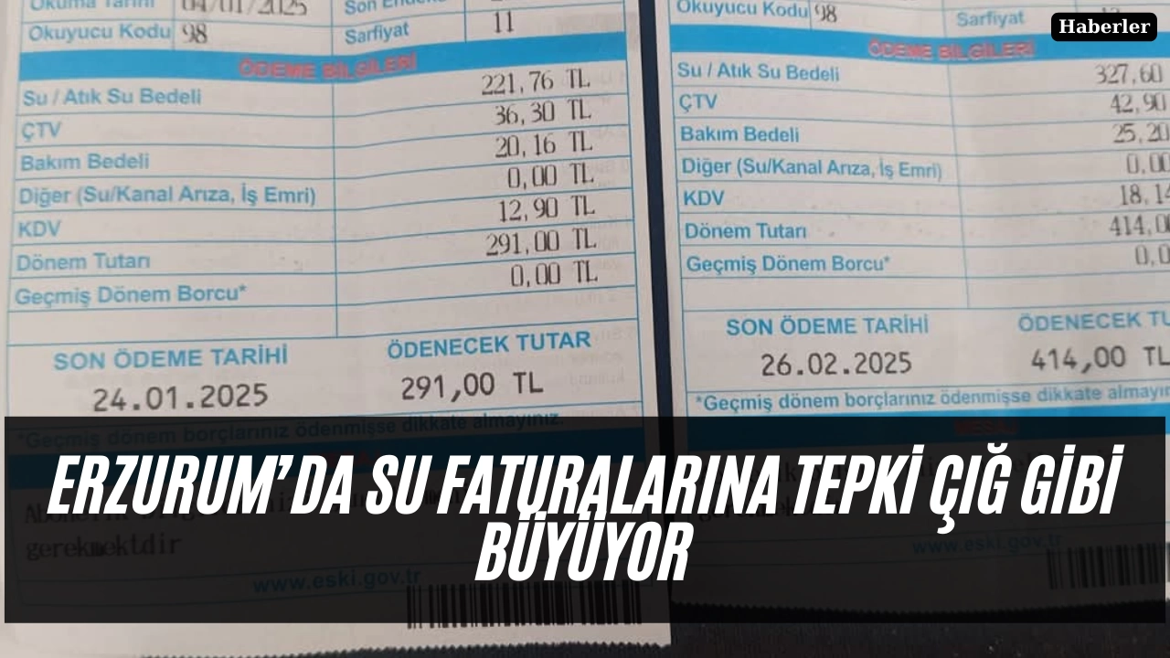 Erzurum’da Ocak ayı itibarıyla gelen su faturaları, vatandaşları isyan ettirdi. Yüksek ücretler karşısında tepkisini dile getiren vatandaşlar, Erzurum Su ve Kanalizasyon İdaresi (ESKİ) ile Erzurum Büyükşehir Belediyesi’ni hedef alarak sosyal medyada yoğun eleştirilerde bulundu. Gelen faturaların elektrik faturalarını bile geçtiğini savunan vatandaşlar, Erzurum’da suyun Türkiye genelinde en pahalı içme suyu haline geldiğini belirtti.