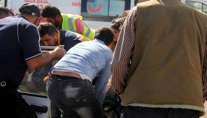 Feci kazada otomobilde sıkışan sürücü ile eşini kurtarmak için yoldan geçen vatandaşlarla, sağlık ve polis ekipleri seferber oldu.