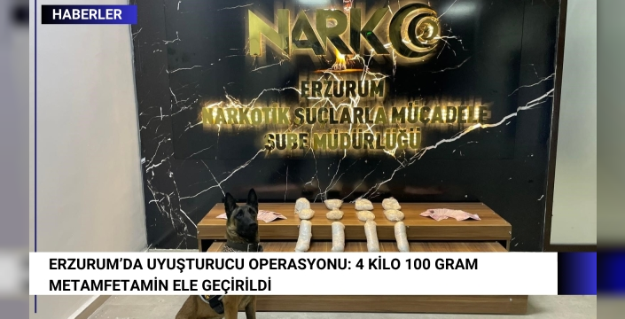 Erzurum Cumhuriyet Başsavcılığı’nın koordinesinde, Erzurum İl Emniyet Müdürlüğü Narkotik Suçlarla Mücadele Şube Müdürlüğü ekipleri tarafından başarılı bir operasyon gerçekleştirildi. Narkotik Madde Arama Köpeği (NMAK) Hera desteğiyle yapılan çalışmalarda 4 kilo 100 gram metamfetamin maddesi ile 35.915 TL suç geliri para ele geçirildi.