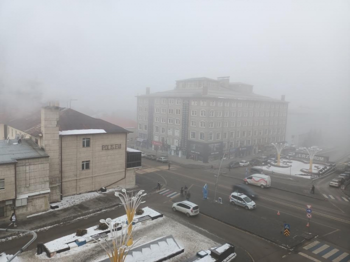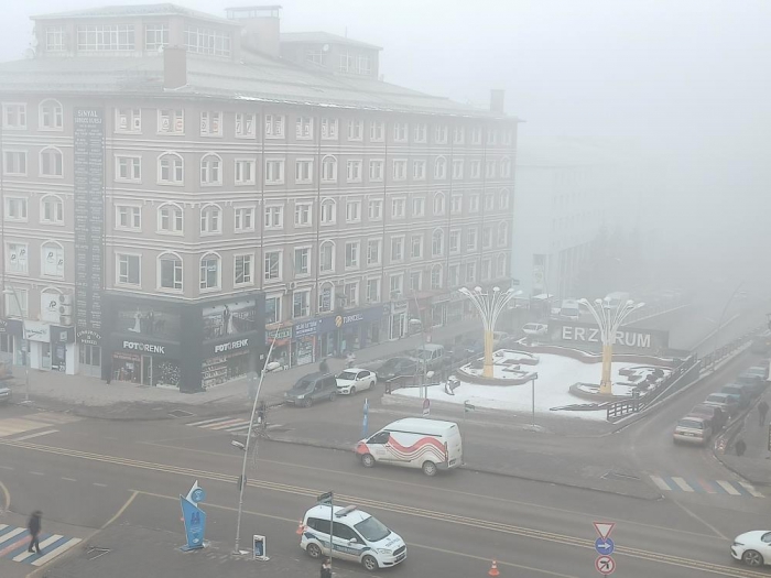 Erzurum şehir merkezinde etkili olan yoğun sis nedeniyle görüş mesafesi 5 metreye kadar düştü. Erzurum’un sisle kaplanan tarihi mekanları ve kırağı tutan ağaçları kartpostallık görüntüler oluşturdu.