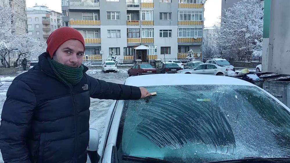 İşe gitmek için buz tutan camlarını güçlükle temizleyen vatandaş, “Gece hava sıcaklığı eksi 10'a kadar düştü. Araçlarımız buz tuttu. Sabah çilemiz yine başladı” dedi.