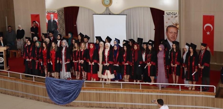 Ardından Fakülte Dekanı Prof. Dr. Cavit Yeşilyurt mezun olan öğrencilere yönelik konuşma yaptı. Prof. Dr. Cavit Yeşilyurt, “Bugün bir aile toplantısı yapmaktayız. Bugün Efkan Ala Düğün Salonunda 70 Çocuğumuzun düğünü var geldiğiniz için çok teşekkür ederiz. Bu üçüncü mezuniyetimiz ama tören olarak ilkini yapıyoruz pandemiden dolayı yapamamıştık bugün biz bahçemize güller diktik güllerimiz suladık, bu programı çok daha coşkulu yapacaktık ama biliyorsunuz 5 şehidimiz var bu yüzden biraz buruk olacak. Bu mezuniyet törenlerinde kahraman aranır gerçek kahramanlar kıymetli velilerimizdir, onlar her zorluğa göğüs gererek hani değim yerinde ise yemedi yedirdi giymedi giydirdi öncelik olarak hep öğrencilerimizin ihtiyaçları olmuştur o yüzden ben bu kahramanlara bir alkış istiyorum. Sevgili öğrenciler ilkler hep yoldaşınız olsun bundan sonra kendinizi donatmaya devam edin biz size bir mastır anahtar verdik o anahtar sadece bu kapının anahtarı değil bütün kapıları açan anahtardır bundan sonra mesleğinizin dışında dünya çapında işler yapabilirsiniz” dedi.