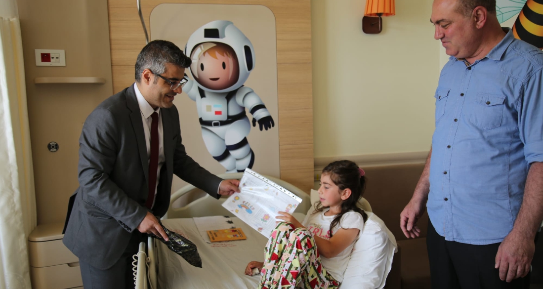 Hatice Korkusuz Okul öncesi (lösemi) ..karnelerini ve hediyelerini Hastane Başhekimi Doktor Öğretim Üyesi İbrahim Hakkı Tör den alarak büyük sevinç yaşadılar.