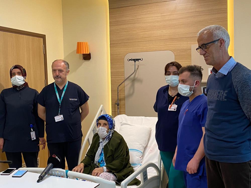 Ameliyat sonrası açıklama yapan Prof. Dr. Kayğın, “Hazal hanım 67 yaşında bize ileri aort yetmezliği ve darlığı şikayetiyle başvurdu. Hastanın bu şikayetlerle kapak ameliyatı planlandı. Hepimizin bildiği gibi normal ameliyatlarımız açık kalpte iman tahtasının yaklaşık 25-30 santimlik bir kesiyle yapılıyordu. Artık kesi yerine buradan yaklaşık 4-5 santimlik küçük bir kesiyle hastamızın aort kapağını değiştirdik. Bu kesi hasta için avantajları ne diye sorarsanız hastanın günlük aktivitesini çok rahatlatıyor. Yoğun bakımda kalmasını, kalıcı süresini kısaltıyor. Hastaneden de taburcu olma süresini kısaltıyor. Ayrıca hastanın normal açık kalp ve sterm kemiği yerine buradan yapılan kesi sonucunda hasta kollarını çok rahat kullanabiliyor. Enfeksiyon riski çok az. Ağrısı çok az oluyor. Günlük aktivitelerini çok rahat yapabiliyor. Diğer türlü klasik kesi de hastanın en az bir ay devamlı sırtüstü yatması gerekiyor ama bu kesiyle böyle bir rutinimiz yok artık. Hasta istediği pozisyonda çok rahat yatabiliyor. Normal kesiye göre bu avantajı kollarını çok rahat kullanabiliyor. Dışarıdan gelecek olan göğsündeki travmalara karşı herhangi bir sıkıntı yaşamıyor. Eğer araç süren bir kişi ise buradan taburcu olurken çok rahatlıkla arabasını kullanabiliyor. Emniyet kemerini takabiliyor. Güzel bir şekilde ameliyatını yaptık. Bundan sonra da bugün de taburcusunu planlıyoruz. Ameliyatın beşinci günü bugün Normalde bir hasta klasik keşide Yaklaşık bir hafta 10 gün gibi veya daha fazla sürede burada yatması gerekebiliyor. 5. gününde hastamız sağlığına kavuştu” diye konuştu.