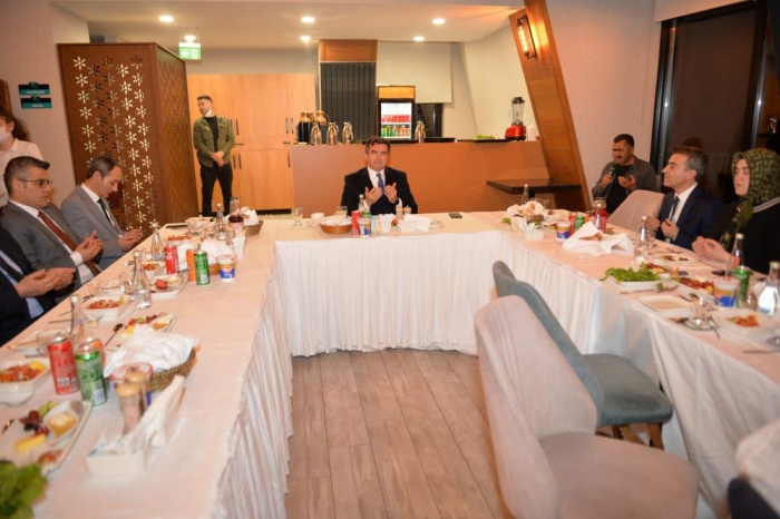 Erzurum Valisi Okay Memiş, sağlık, 112 Acil Çağrı Merkezi çalışanları ve öğretmenlerle iftar yemeğinde bir araya geldi.