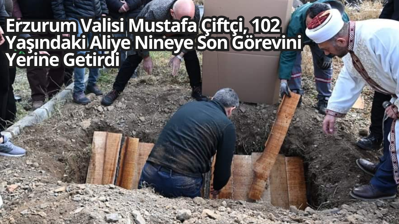 Dün akşam saatlerinde 102 yaşında hayatını kaybeden Aliye Göker, bugün Erzurum Narmanlı Camii’nde kılınan cenaze namazının ardından gözyaşları ve dualar eşliğinde Asri Mezarlığı’nda toprağa verildi. Cenaze törenine katılan Erzurum Valisi Mustafa Çiftçi, merhum Aliye nineyi adeta öz evladı gibi son yolculuğuna uğurladı. Valinin, taziye dileklerini bizzat iletmesi ve ailesine gösterdiği yakın ilgi, törende bulunan herkesi duygulandırdı.