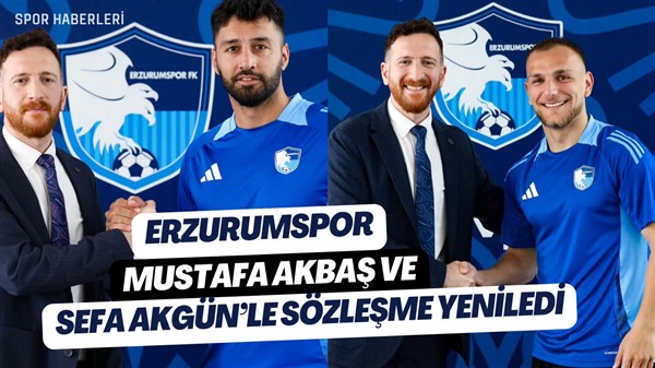 İç transfer çalışmaları sürdüren Erzurumspor, sözleşmeleri sona eren Mustafa Akbaş ve Sefa Akgün’le yeniden sözleşme imzaladı.
