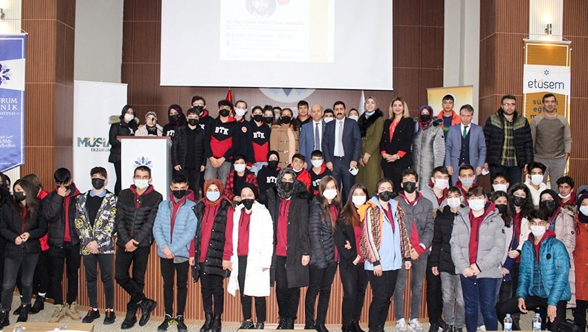 Prof. Dr. Muammer Yaylalı Konferans Salonunda yüz yüze gerçekleştirilen seminere Erzurum Genç Müstakil Sanayici ve İşadamları Derneği Başkanı Yasin Acar, Yıldızkent Nafizbey Mesleki ve Teknik Anadolu Lisesi ile Erzurum Bilim Teknik İnovasyon Kolejinin müdür, müdür yardımcısı, öğretmen ve öğrencileri, kadın kooperatiflerinin temsilcileri, girişimci adayları ve çok sayıda üniversite öğrencisi katıldı.