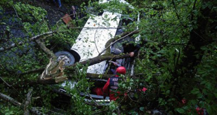 Zonguldak’ın Ereğli ilçesinde cenazeden dönenleri taşıyan minibüs uçuruma yuvarlandı. Kazada 10 kişi öldü, 16 kişi yaralandı.