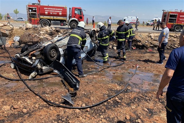 Hatay'da takla atarak yanan otomobil hurdaya dönerken, aynı aileden 4 kişi hayatını kaybetti, 2 kişi yaralandı.