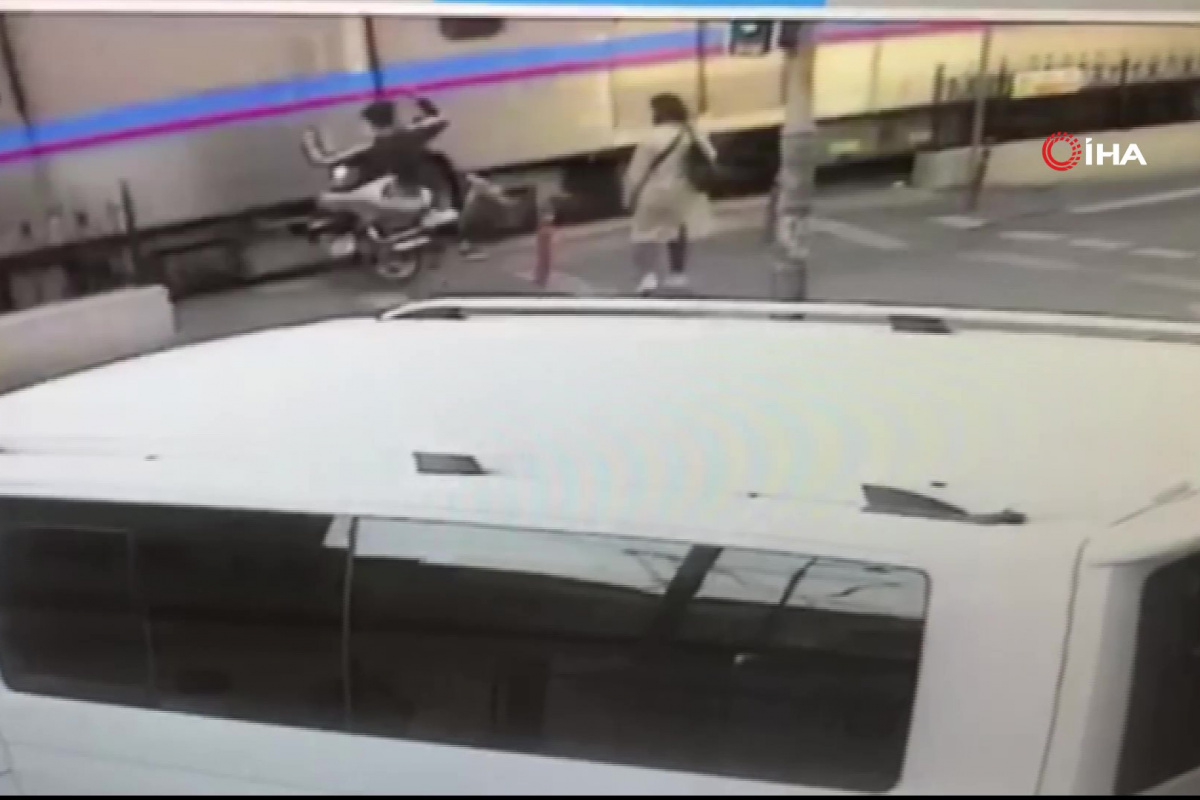 Sultangazi'de motosikletliyle tramvayın çarpıştığı kaza anı kameraya anbean kaydedildi. Görüntülerde, araçların geçişini bekledikten sonra yolun karşısına geçmeye çalışan kadını fark eden motosikletli manevra yaparak tramvaya çarptığı, daha sonrasında ise motosiklette bulunan gencin sürüklendiği görülüyor.