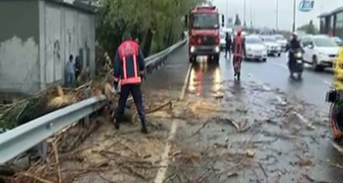 E-5 Otoyolu Cevizilibağ mevkiinde yan yolda fırtına nedeniyle bir ağaç yola devrildi. İki araçta maddi hasar meydana gelirken, sürücüler canlarını zor kurtardı.