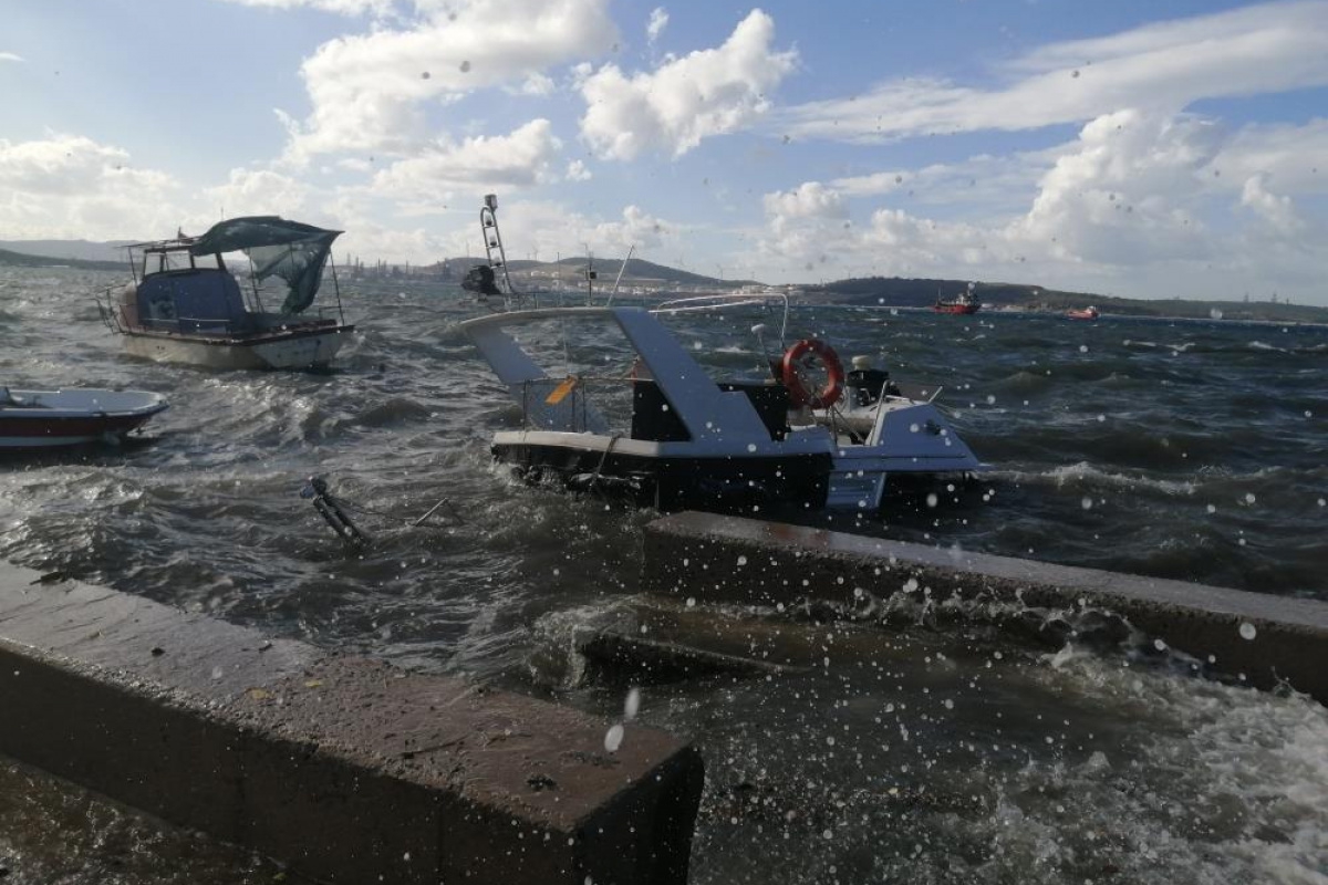 İzmir'de etkili olan fırtına sebebiyle Aliağa ilçesinde balıkçı tekneleri battı. Şiddetli lodos nedeniyle sahil bandında 4 tekne zarar görürken 3 tekne alabora oldu.