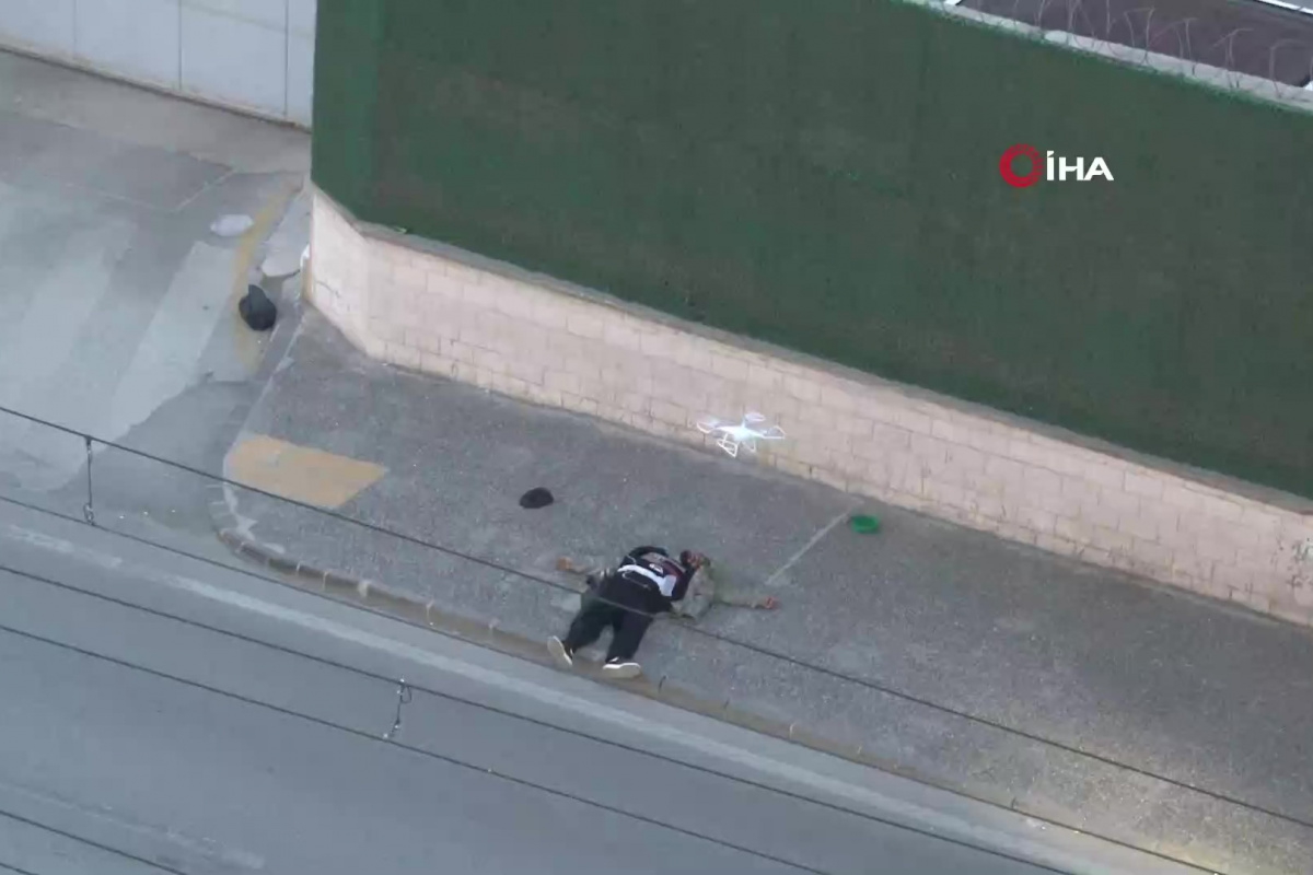 Gaziantep'te Emniyet Müdürlüğünün önüne gelerek, 'üzerimde bomba var' diyen şahıs polis tarafından vurularak etkisiz hale getirilirdi. O anlar İHA'nın kamerasına anbean yansıdı.