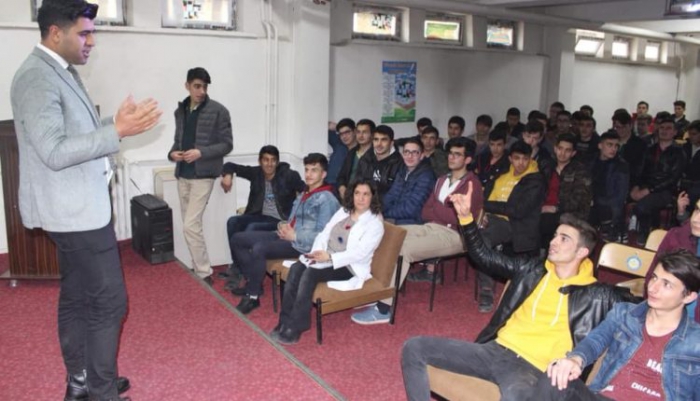 Erzurum basın camiasının başarılı isimlerinden olan Mikail Kurban, kısa olmasına rağmen başarılarla dolu mesleki kariyerini mezun olduğu okulda anlattı. Öğrencilerle deneyimlerini paylaşan Mikail Kurban, öğrenim gördüğü sınıfa gidip, oturduğu sırada fotoğraf çektirmeyi de ihmal etmedi.