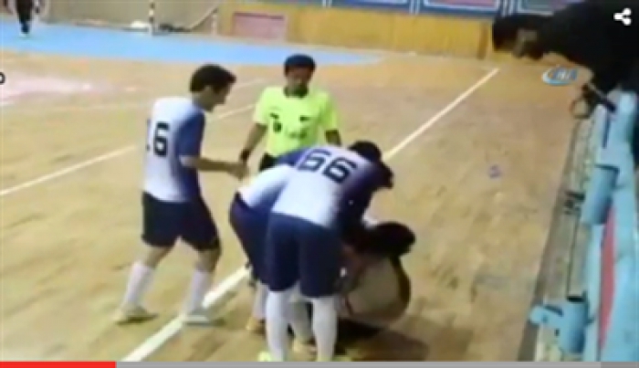 İran’da oynanan bir salon futbolu maçında gol sevinci, az daha bir taraftarın ölümüne yol açıyordu. Golün asistini yapan oyuncu, sevincine tribündeki bir taraftarı da dahil etmek isteyince, onu kontrolsüz biçimde aşağı çekti.