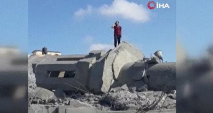 İşgalci İsrail, Gazze Şeridi’ne aralıksız bir şekilde sürdürdüğü saldırılarda özellikle yerleşim yerlerini hedef alıyor. İsrail’in saldırıları sonucu Gazze’nin kuzeyindeki Qlaibo Cami yerle bir olurken, Gazze Vakıflar ve Diyanet İşleri Bakanlığı caminin hedef alınmasını kınadı. Ancak işgalci İsrail’in saldırısı ezanı dindiremedi. Filistinli bir adam yıkılan caminin enkazının üzerine çıkarak ezan okudu.