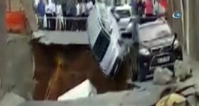 İstanbul Ümraniye'de yapımı devam eden inşaatın istinat duvarı çöktü. Çukura düşen araçların düşme anı ise, çevredeki vatandaşlar tarafından saniye saniye görüntülendi.