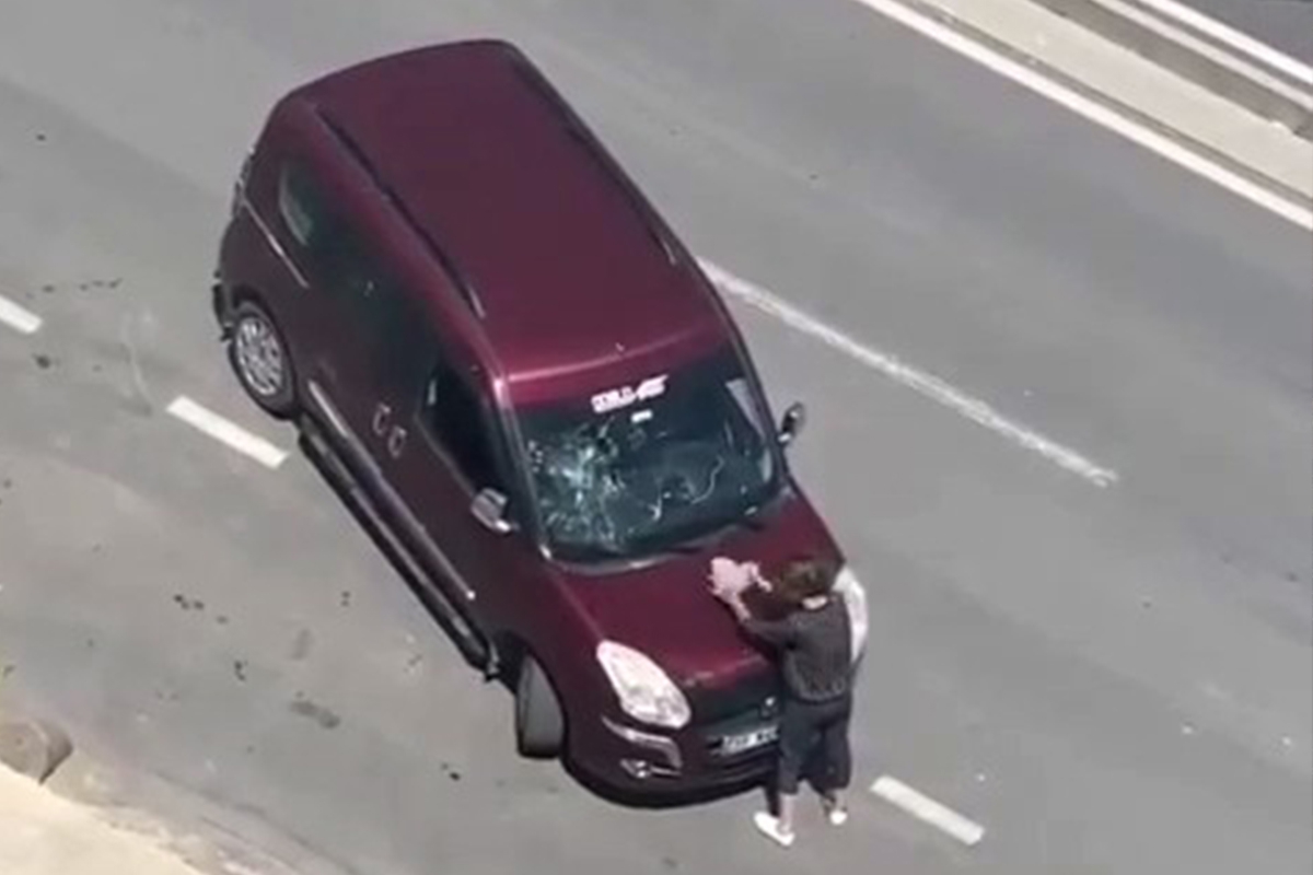 Olay, geçtiğimiz günlerde Beylikdüzü Yakuplu Mahallesi'nde yaşandı. Hürriyet Bulvarı'nda gerçekleşen maddi hasarlı trafik kazası sonrasında alkollü olduğu iddia edilen bir kadın, ortalığı birbirine kattı. Kendisine çarpan vatandaşın kaçmak istemesine sinirlenen kadın, aracın önünü keserek taşla saldırdı. Defalarca yerden aldığı taşı araca fırlatan kadın, kaza yaptığı vatandaşa küfür ve tehditler savurdu. Neye uğradığını şaşıran sürücü çareyi kaçmakta bulurken, yaşanan o anlar çevredeki bir vatandaşların cep telefonu kamerasına saniye saniye yansıdı.