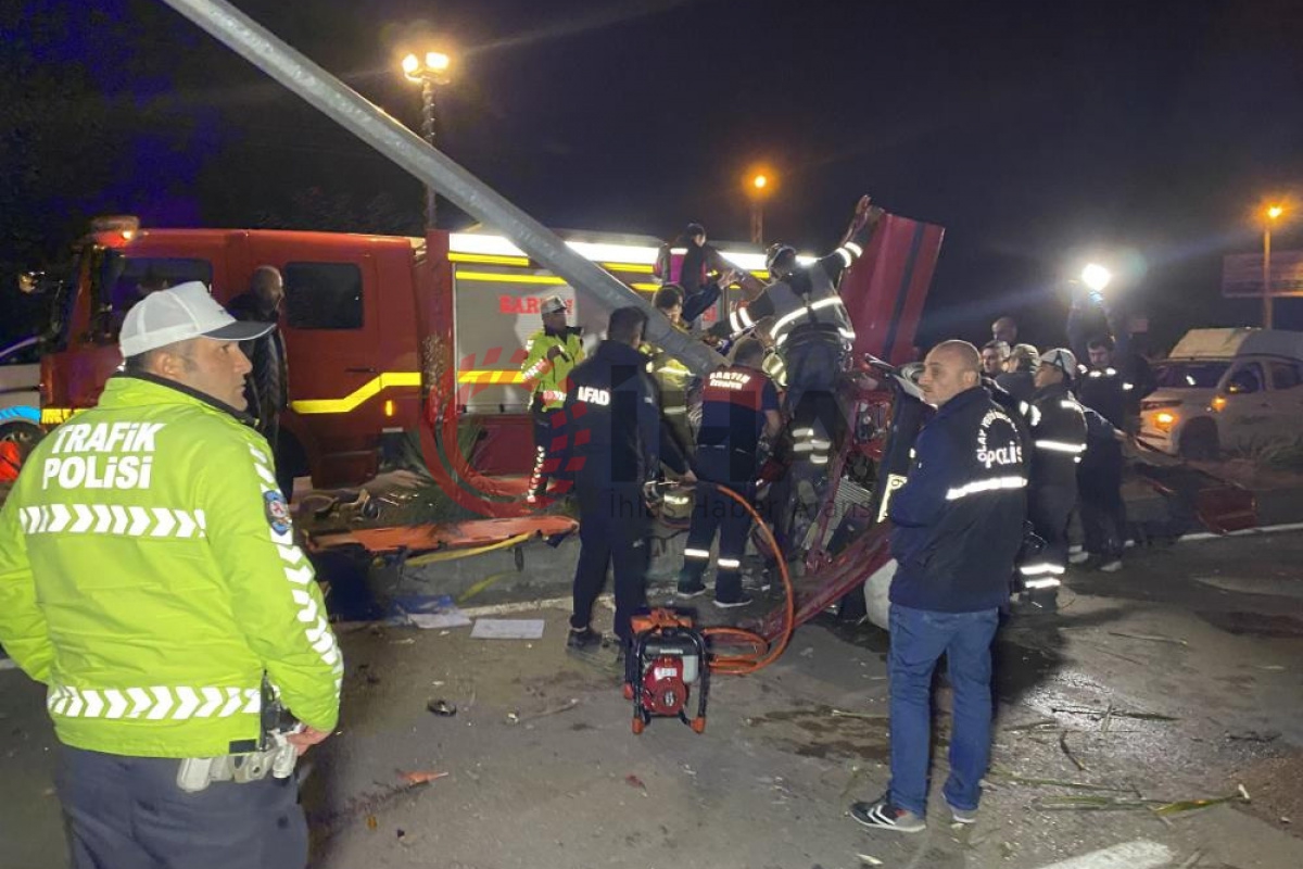 Kaza, Bartın - Zonguldak kara yolu, Toptancılar Sitesi mevkiinde meydana geldi. Bartın'dan Zonguldak yönüne seyir halinde olan 74 BB 669 plakalı Tofaş marka otomobil, sürücüsünün direksiyon hakimiyetini kaybetmesi sonucu önce orta refüje, ardından aydınlatma direğine çarptı.