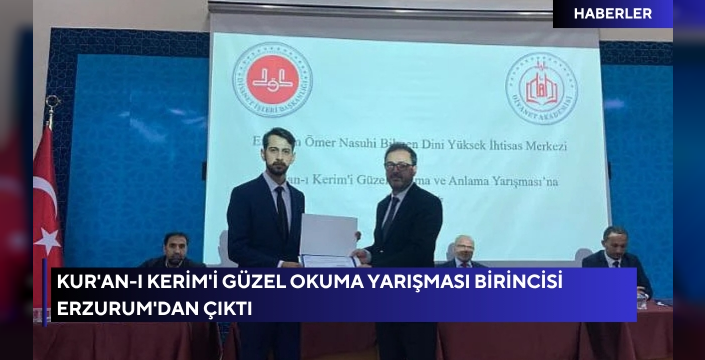 Diyanet İşleri Başkanlığı’na bağlı akademi merkezleri arasında düzenlenen Kur’an-ı Güzel Okuma ve Anlama 7. Bölge Yarışmaları’nda Erzurum Valiliği Basın ve Halkla İlişkiler Müdür Vekili Ahmet Polat’ın oğlu Abdurrahman Polat birinci oldu.