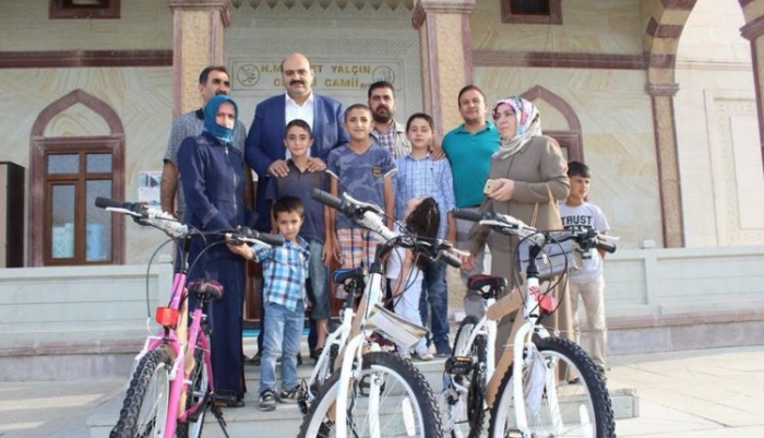 Aziziye Belediye Başkanı Muhammed Cevdet Orhan, Cimilli Aile Külliyesi’nde Kur’an-ı Kerim okumayı öğrenen çocuklara bisiklet hediye etti.