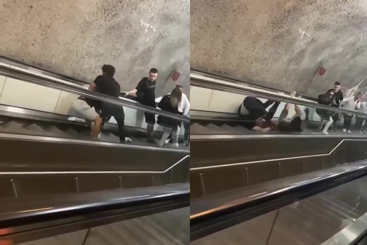 İki taraf da yuvarlanmalarına rağmen kavga etmekten vazgeçmeyerek birbirlerine saldırmaya devam etti. Yürüyen merdivenlerdeki diğer yolcular ise kavga edenleri zorlukla ayırmaya çalıştı.