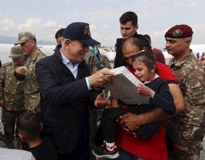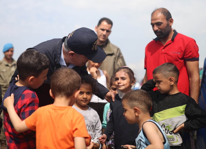 Yetkililerden buralardaki faaliyetlere ilişkin de bilgi alan Bakan Akar, çocuklarla yakından ilgilendi, oyuncak ve çikolata hediye etti.