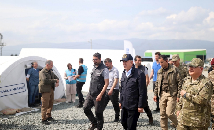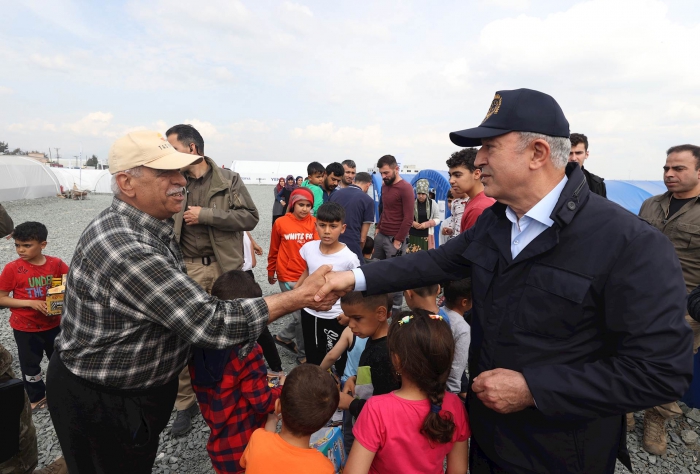 Millî Savunma Bakanı Hulusi Akar beraberindeki Genelkurmay Başkanı Orgeneral Yaşar Güler ile 6 Şubat’ta merkez üssü Kahramanmaraş'ın Pazarcık ilçesinde 7,7, Elbistan ilçesinde ise 7,6 büyüklüğündeki depremlerin vurduğu iller arasında yer alan Hatay'daki faaliyetlerine devam ediyor.