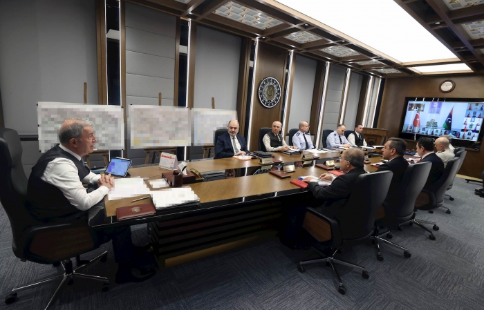 Millî Savunma Bakanı Hulusi Akar başkanlığında; Genelkurmay Başkanı Orgeneral Yaşar Güler, Kara Kuvvetleri Komutanı Orgeneral Musa Avsever, Deniz Kuvvetleri Komutanı Oramiral Ercüment Tatlıoğlu, Hava Kuvvetleri Komutanı Orgeneral Atilla Gülan, Bakan Yardımcıları Yunus Emre Karaosmanoğlu, Şuay Alpay, Alpaslan Kavaklıoğlu, Muhsin Dere, Ordu Komutanları ve yurt dışındaki birliklerin komutanlarının katılımı ile video telekonferans toplantısı gerçekleştirildi.