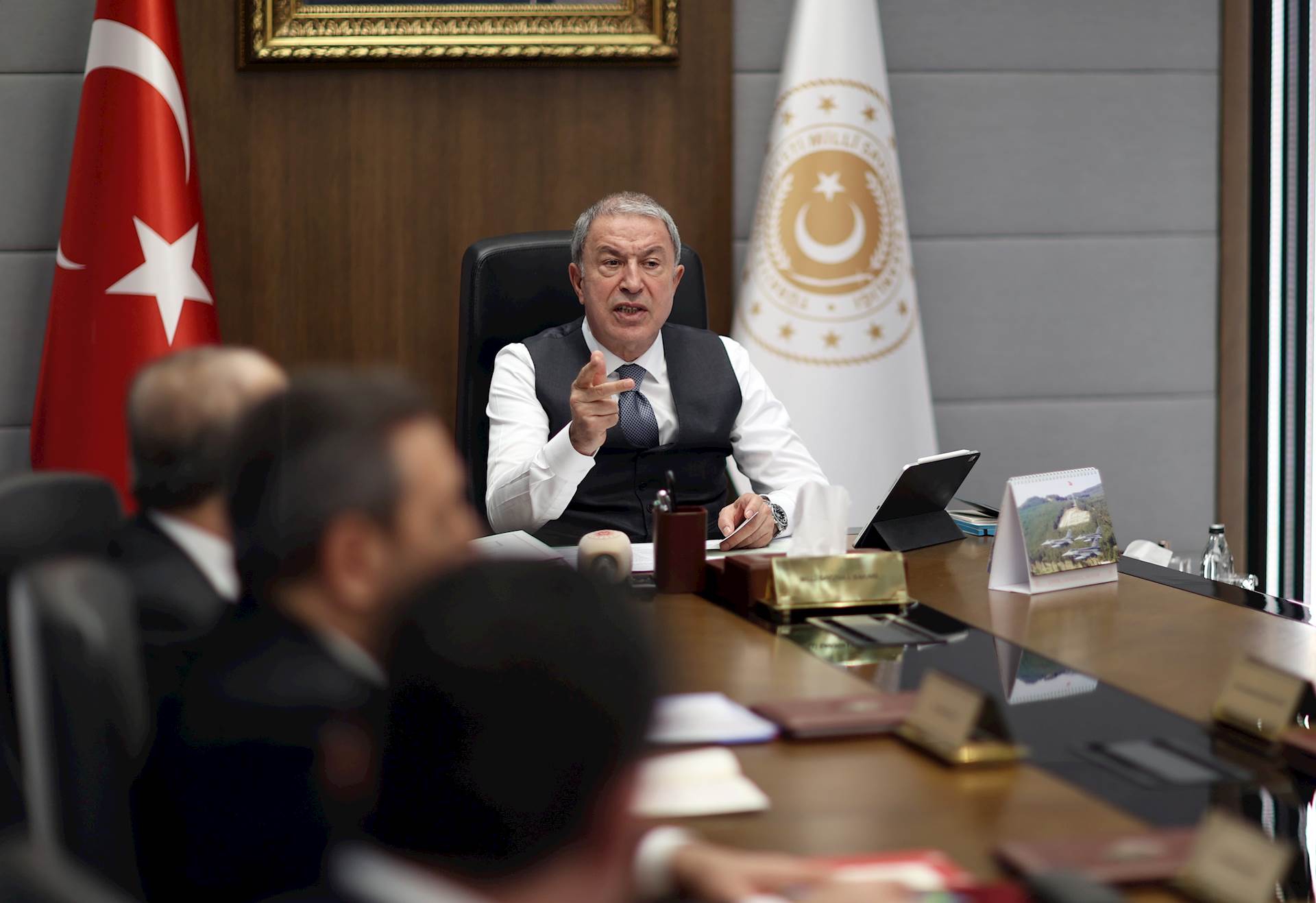 Bakan Akar’ın talimatlar verdiği toplantıda, Kuvvet ve Ordu Komutanlarının yanı sıra yurt içi ve dışındaki birlik komutanları devam eden faaliyetlere ve sahadaki son duruma ilişkin bilgiler paylaştı.