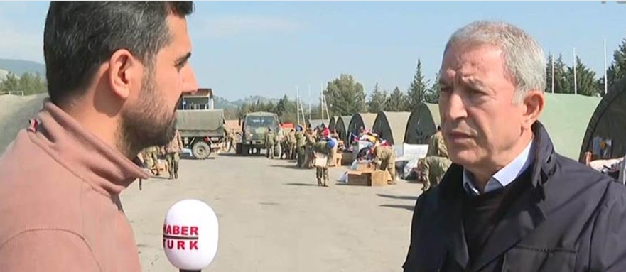 Millî Savunma Bakanı Hulusi Akar, Hatay’da Habertük’ün sorularını cevaplandırarak deprem bölgesindeki çalışmalara ilişkin açıklamalarda bulundu. Bakan Akar özetle şunları söyledi: