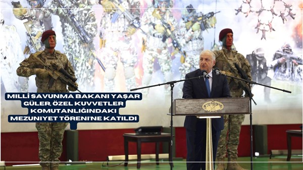 Millî Savunma Bakanı Yaşar Güler, 15’inci Dönem Özel Kuvvetler Komutanlığı İhtisas Kursu Mezuniyet Töreni’ne katıldı. Törende, Genelkurmay İkinci Başkanı Orgeneral Selçuk Bayraktaroğlu da hazır bulundu.