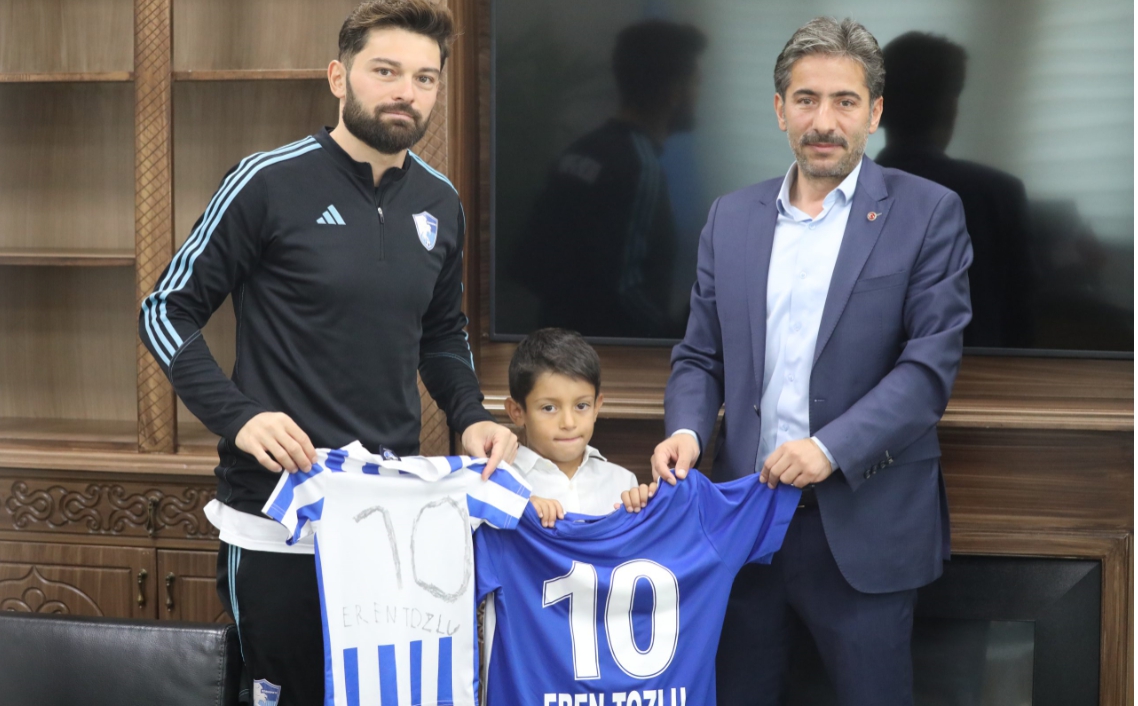 Sosyal medyada gördüğü fotoğrafa kayıtsız kalmayan futbolcu Eren Tozlu, minik dadaş'a formasını hediye ederek bir süre sohbet etti. Heyecanı ve mutluluğu yüzüne yansıyan minik Ahmet, Eren Tozlu’yu çok sevdiğini ve bir araya geldiği için çok mutlu olduğunu ifade etti.