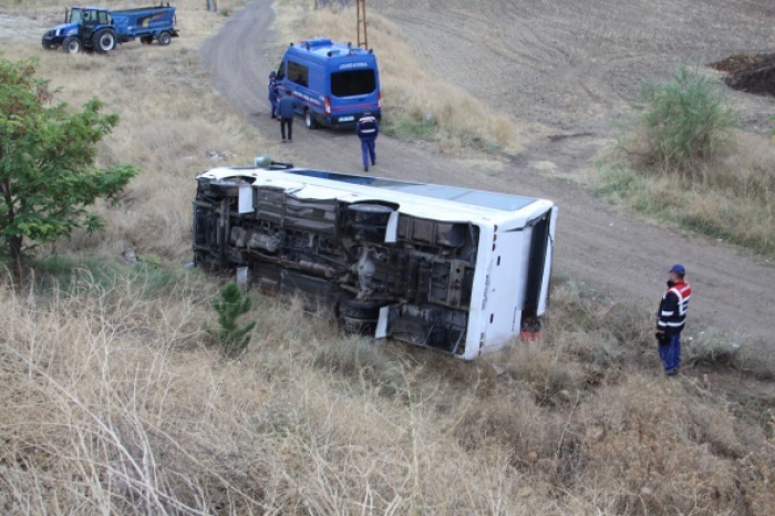 Edinilen bilgiye göre, ilkokul öğrencilerini taşıyan Nazım K. idaresindeki 18 AAE 585 plakalı midibüs,sürücüsünün direksiyon hakimiyetini kaybetmesi sonucu şarampole devrildi.