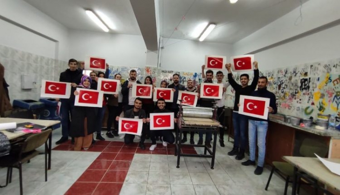 Proje kapsamında Oltu Meslek Yüksekokulu Baskı resim atölyesinde 30 öğrenci ile Baskı resim tekniğinde Türk bayrağı çizimi gerçekleştirilerek kendi bayrağını kendin yap sloganı adı altında her öğrencinin kendi bayrağını yapması sağlandı.