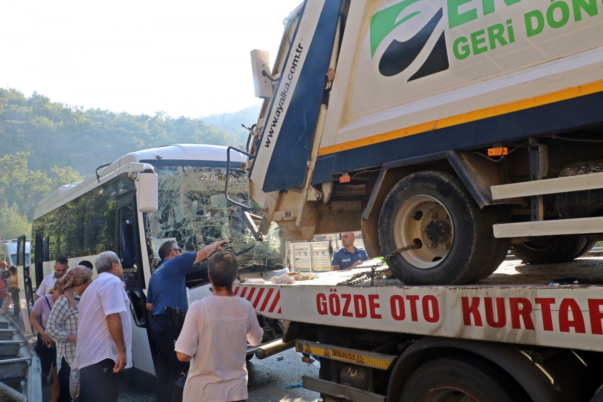 Öte yandan, kaza sonrası midibüsün koltuklarının tamamının öne doğru olması, kazanın şiddetini gözler önüne serdi. Ön tarafı hurdaya dönen midibüs, çekici yardımıyla kaza yerinden alındı.