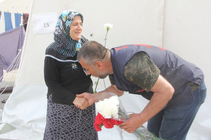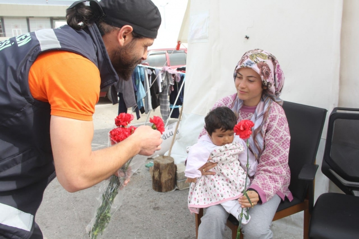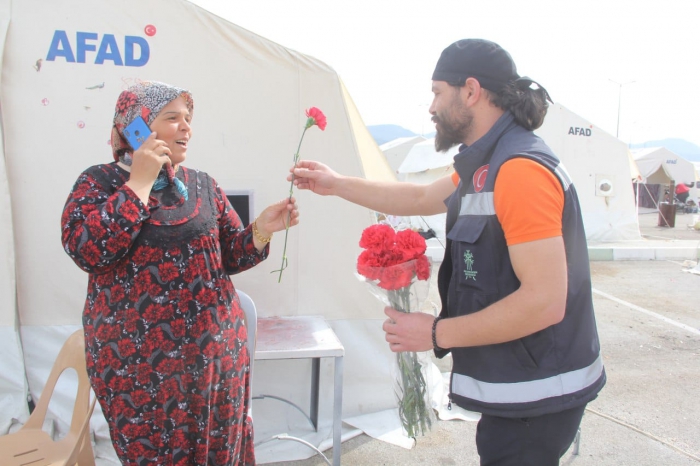 Palandöken Belediyesi depremzede kadınları unutmadı. Deprem bölgesindeki Belediye personeli çadır kentleri ziyaret ederek, depremzede kadınların 8 Mart Dünya Kadınlar gününü kutladı. Palandöken Belediye Başkanı Muhammet Sunar’ın kutlama mesajını paylaşan ekipler, çiçek takdiminde bulundu.