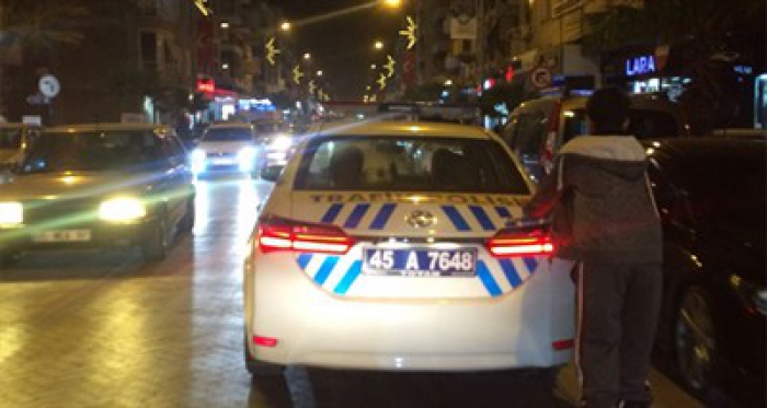 Manisa'nın Turgutlu ilçesinde patenli bir genç, ilçenin en işlek caddesi üzerinde polis otosunun arkasına tutunarak yoğun trafikte ilerledi. Polislerin kendisini fark ettiğini anlayan patenli genç, aracı bırakarak caddeden uzaklaştı.