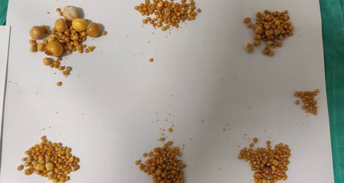 Manisa’da karın, mide ağrısı ve şişkinlik şikayetiyle Merkezefendi Devlet Hastanesine başvuran 56 yaşındaki F.B. isimli kadın hastanın safra kesesinden ameliyatla bin 122 taş çıkarıldı.