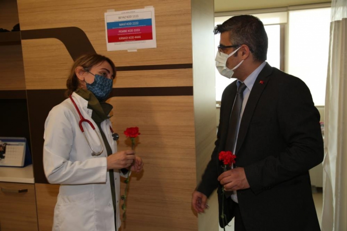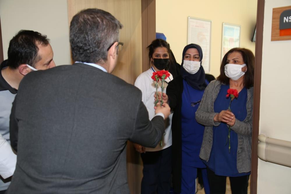Erzurum Şehir Hastanesi Başhekimi Dr. Öğretim Üyesi İbrahim Hakkı Tör farklı birimlerde görev alan kadın çalışanları, hasta ve hasta yakınlarını ziyaret ederek bu özel günlerini karanfiller ile kutladı. Kutlamada hastane yönetimi tam kadro başhekim Tör’ e eşlik etti.