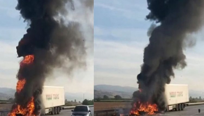 Bursa’da seyir halindeki tır alevlere teslim oldu.