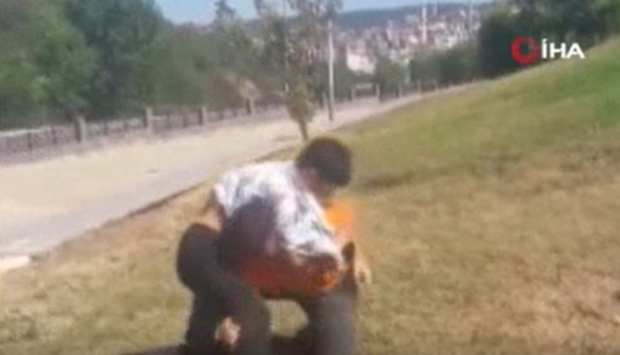 İstanbul Arnavutköy’de parkta gezintiye çıkan bir gruptaki iki genç arasında kavga çıktı. İki genç birbirini öldüresiye döverken, arkadaşları ise “boynunu sık, kafasına vur” şekilde tezahürat tutarak onları görüntüledi.