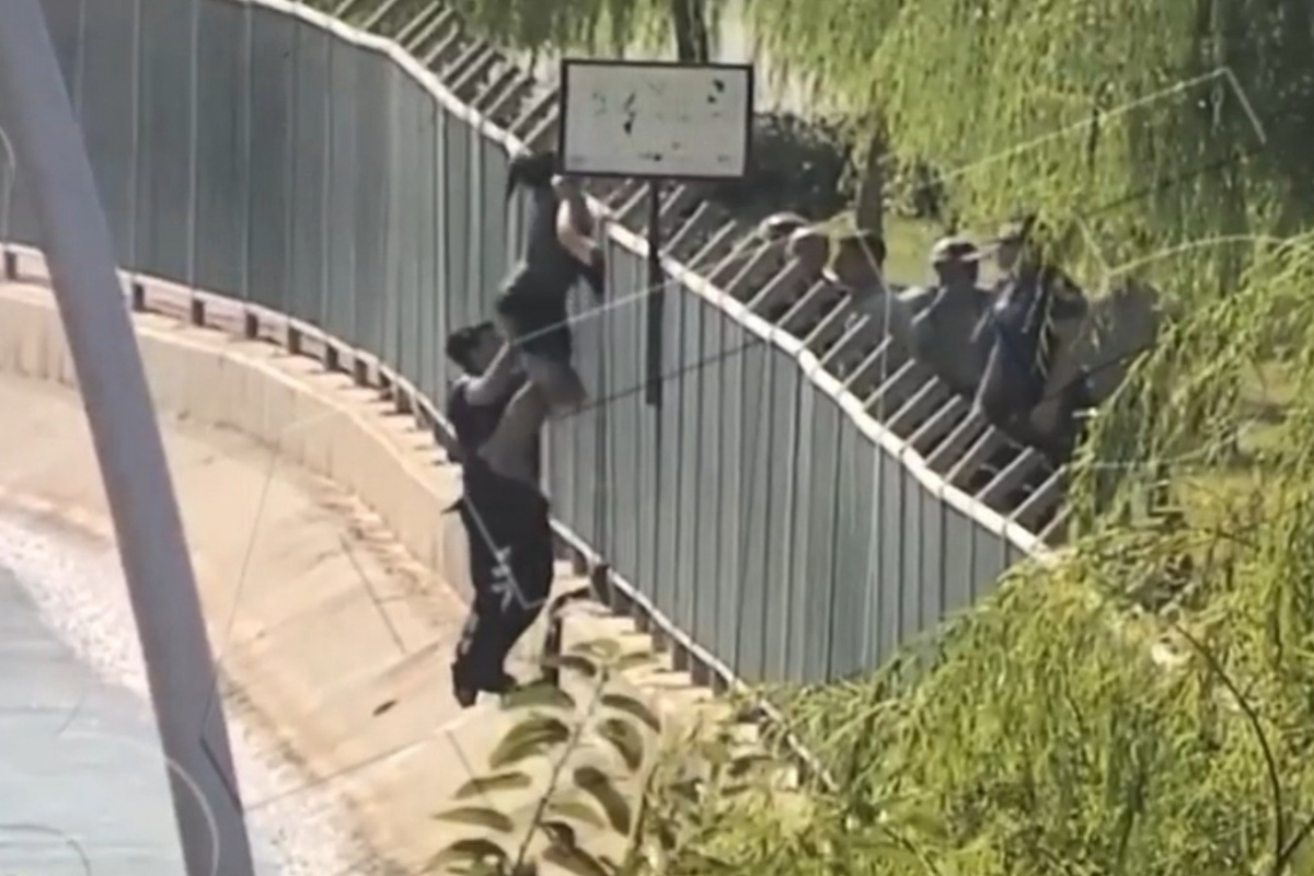 Bir polis memuru, yaklaşık 2 metre yüksekliğindeki demir korkuluktan atlayarak sulama kanalındaki kadını kurtardı. Korkuluklardan çıkarılan kadın, sağlık ekiplerine teslim edildi.