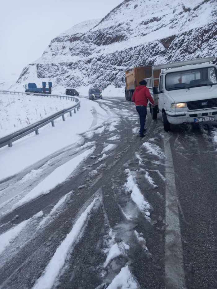 Erzurum-Tekman karayolu Palandöken Geçidi'nde kar çilesi başladı. Kara hazırlıksız yakalanan sürücüler yolda mahsur kaldı.